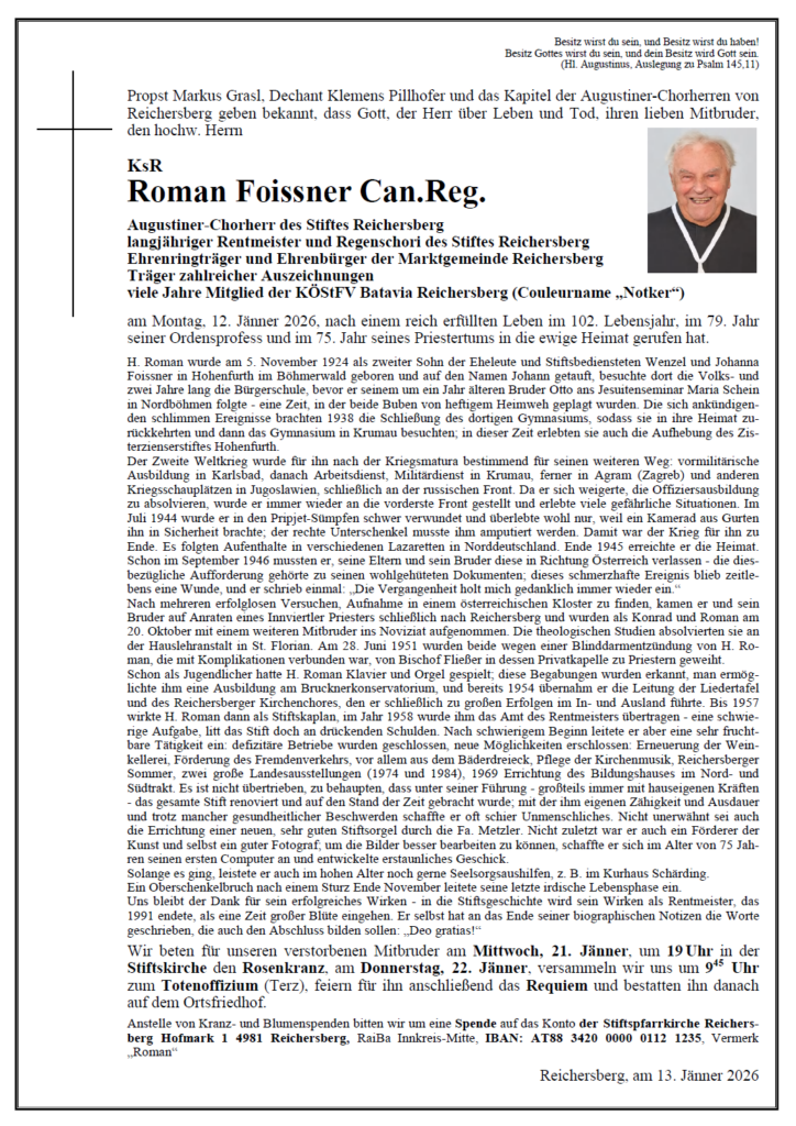 „Alles hat seine Zeit“ mit diesen Worten aus dem Buch Kohelet habe ich vor einem Jahr das letzte geistliche Wort unserer geschätzten Heimatzeitung Glaube und Heimat gegliedert. Es war kein leichter Abschied. Viele, zum Teil auch enttäuschte Bezieher, haben mir ins Bewusstsein gerufen, wie tief verwurzelt unser Heft bei den Leserinnen und Lesern war. Der Übergang vom Verein in die neue Struktur, war holpriger als befürchtet. Es taten sich viele rechtliche Probleme auf, die zwischendurch eher ein Scheitern, als eine Zukunft aufscheinen ließen. Ohne die intensive Mitarbeit aus der Vorstandschaft, besonders in der Person von Erich Schaufler wäre dieses Unterfangen gescheitert. Daher gilt ihm und allen Mitstreitern an dieser Stelle nochmals ein herzliches Vergelts Gott.