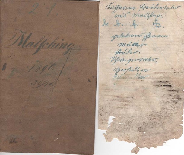 Vor vielen Jahren hat ein Malschinger Pfarrangehöriger seine Heimatpfarrei besucht und dabei einen Blick durch die offenstehende Türe des Turmes geworfen. Die Neugier trieb ihn dann nach oben. In einer Mauernische entdeckte er dann einen Packen von Notenblättern und anderen alten Dokumenten. Er nahm sie mit, u sie vor weiterem Verfall zu bewahren.
